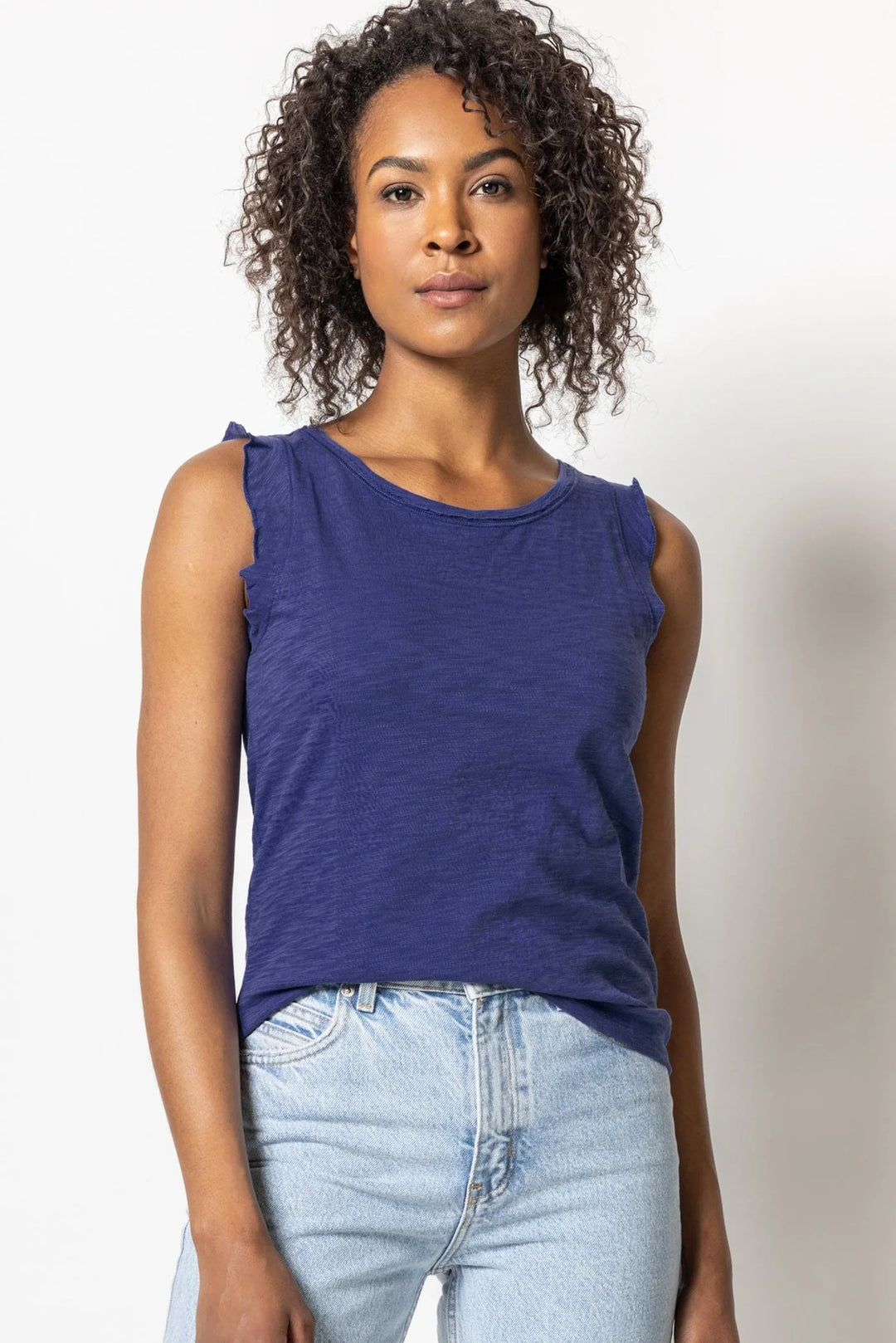 SHIRRED BACK V NECK TANK