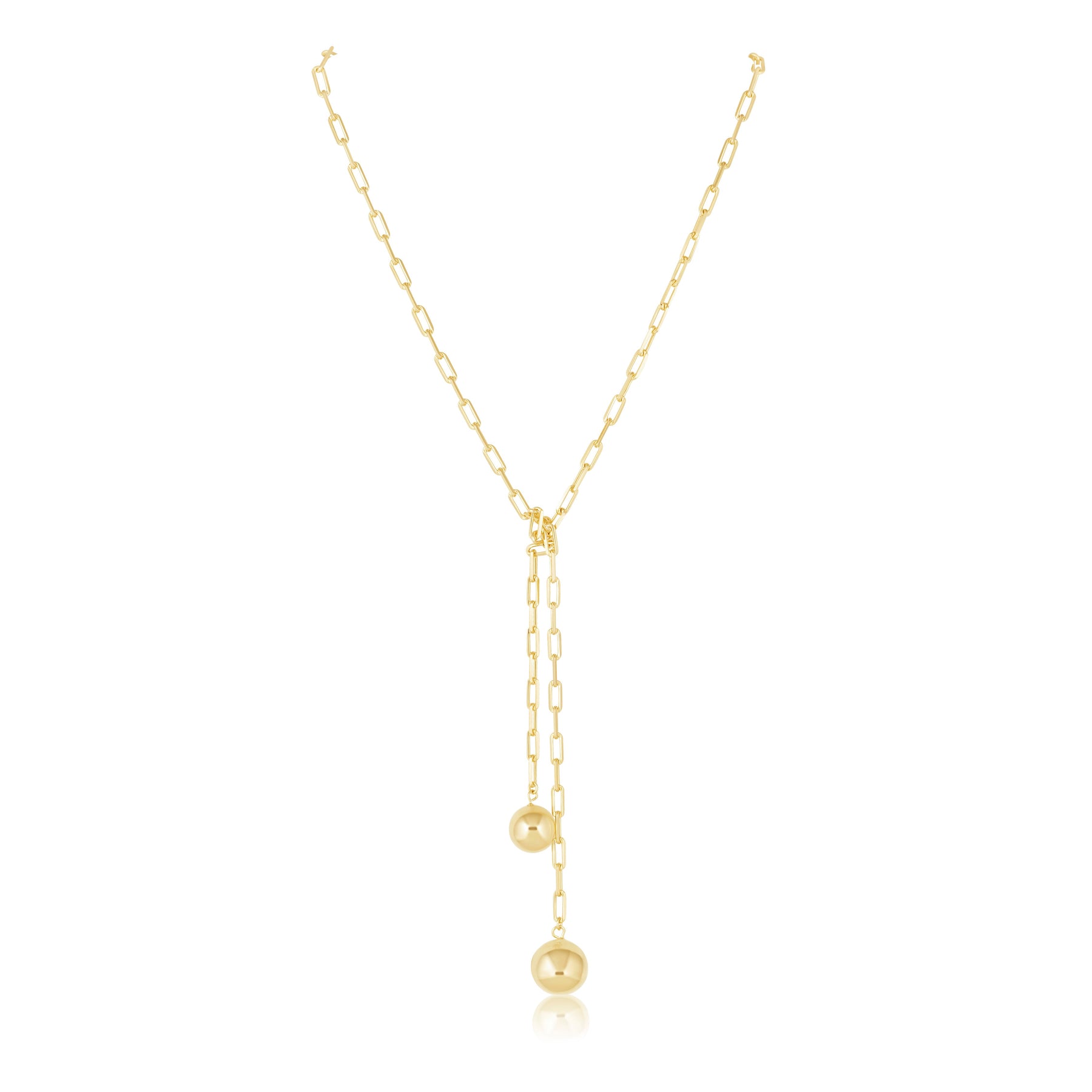 Look incredible wearing the Alexandra Lariat! This gold chain necklace is perfect for any ensemble and will make you shine with its beaded ends. Make a statement with this elegant necklace that radiates beauty and grace.