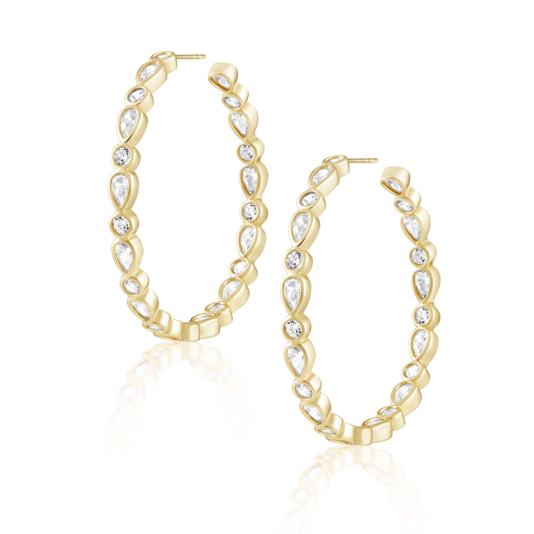 Add effortless luxe to your look with the Cassidy Hoop earrings. Hand-crafted with Cz Stones in teardrop and round shapes, these earrings blend sophistication and glamour to give you an enviable look. Wear them day or night for a stunning effect that's sure to turn heads!