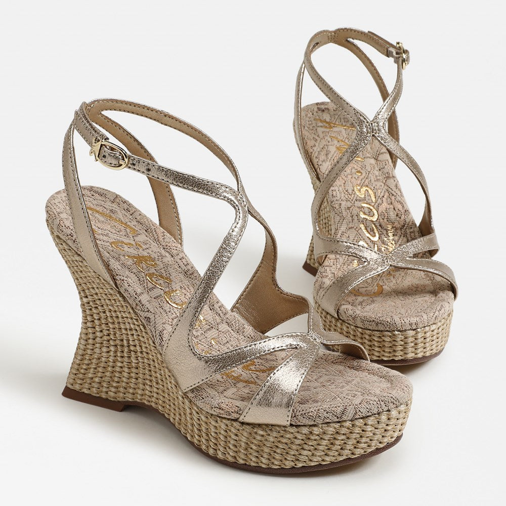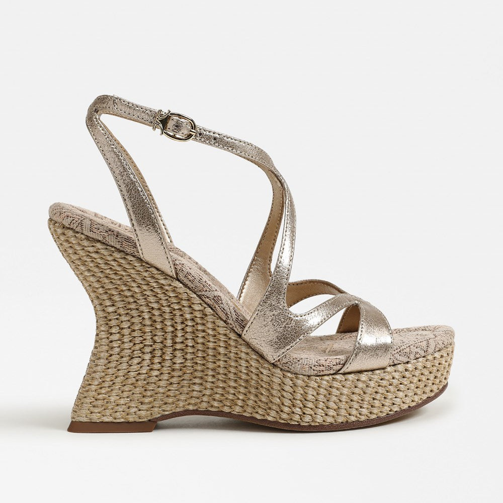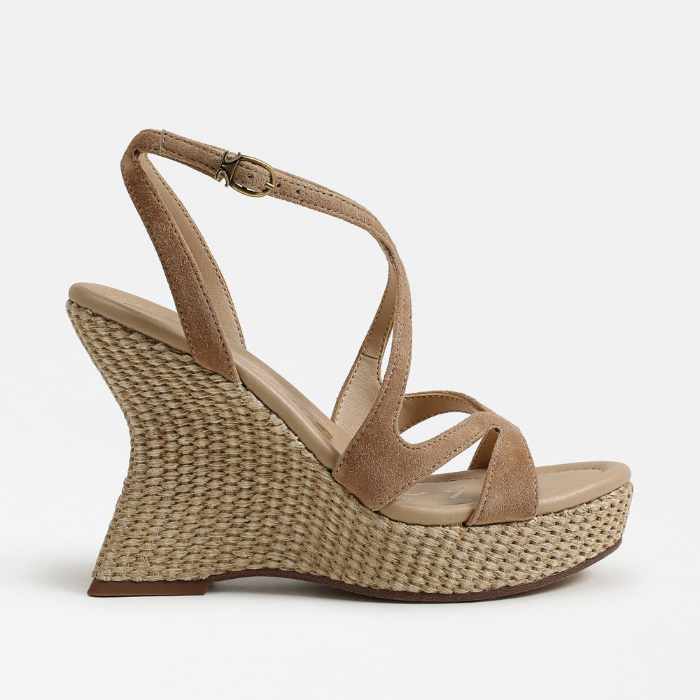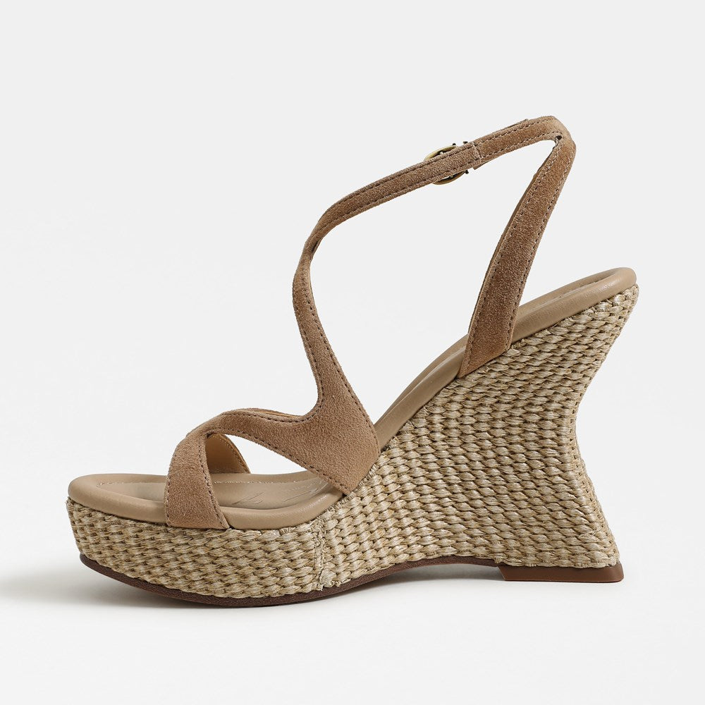 Turn up the drama—The Trina Strappy Wedge Sandal redefines bold with its sculptural wedge heel, soaring platform, and clean lines. Modern straps and a round toe make this shoe a statement for every fashion moment.