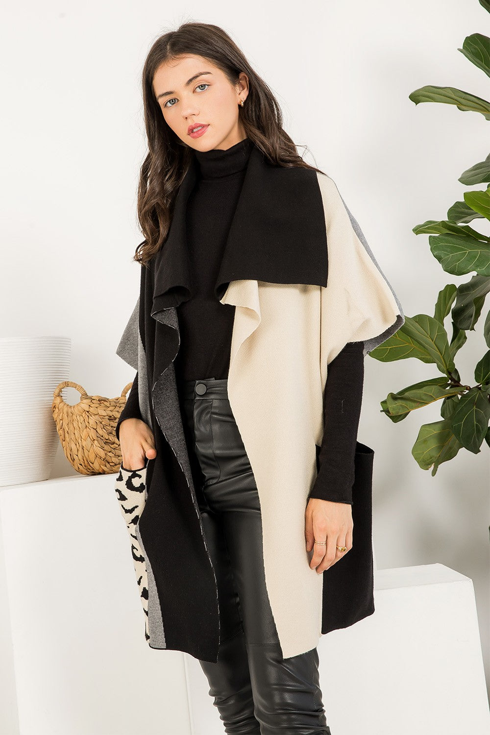 COLORBLOCKED SLEEVELESS CARDIGAN