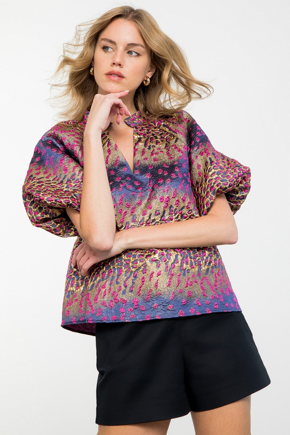RUFFLE SLEEVE CHEETAH PRINT TOP