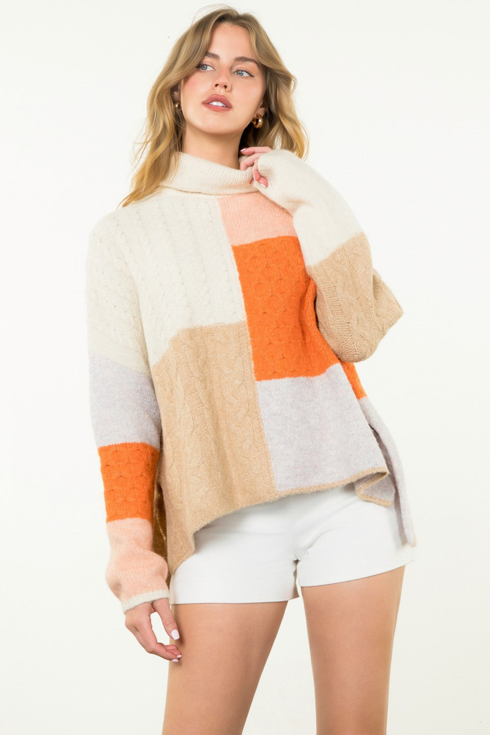 COLORBLOCK TURTLENECK KNIT PONCHO
