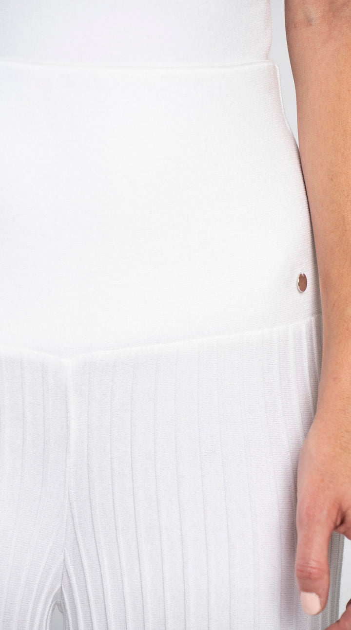 Julia Plisse-Look Full Length Wide Leg Pants, White