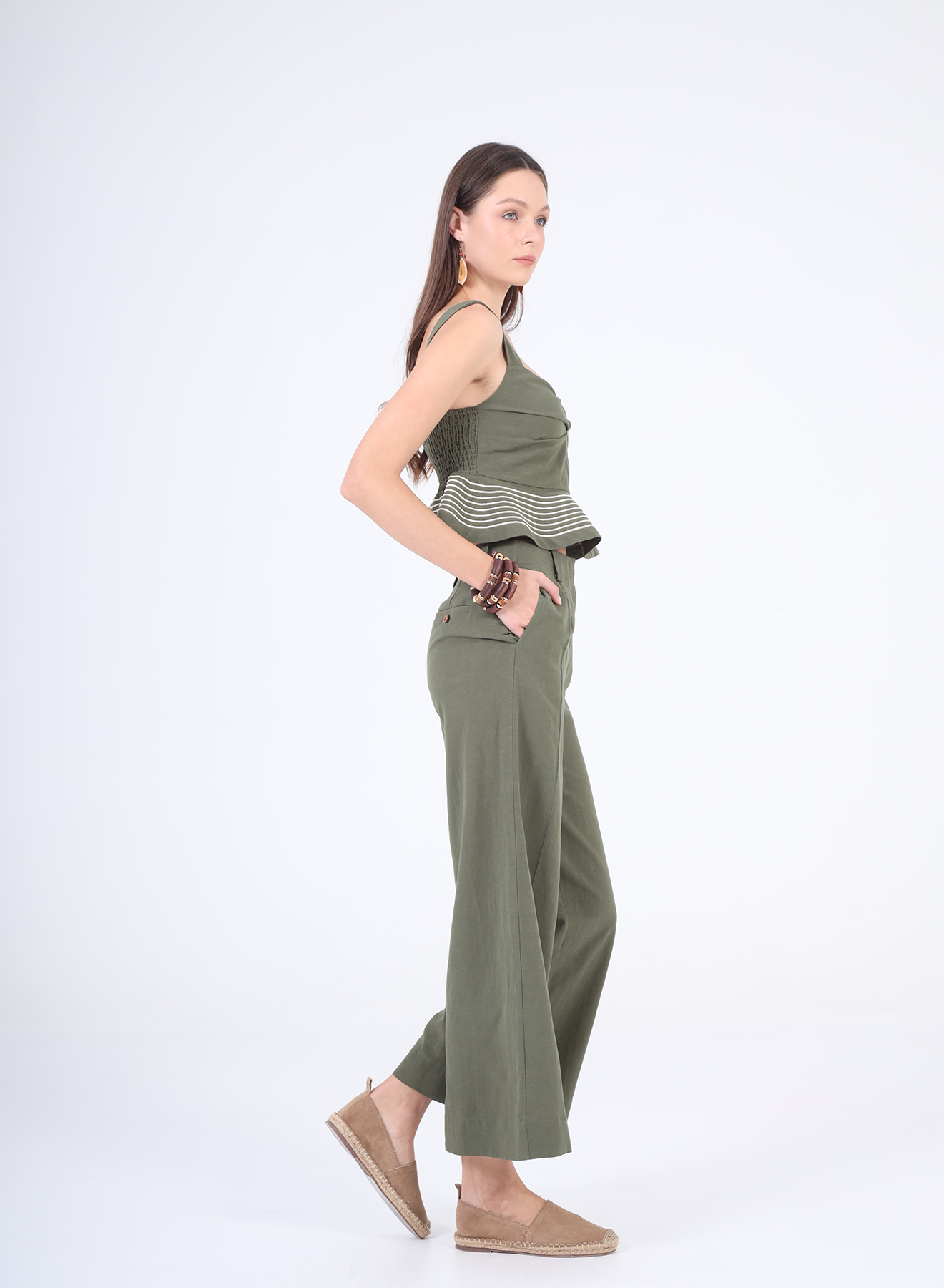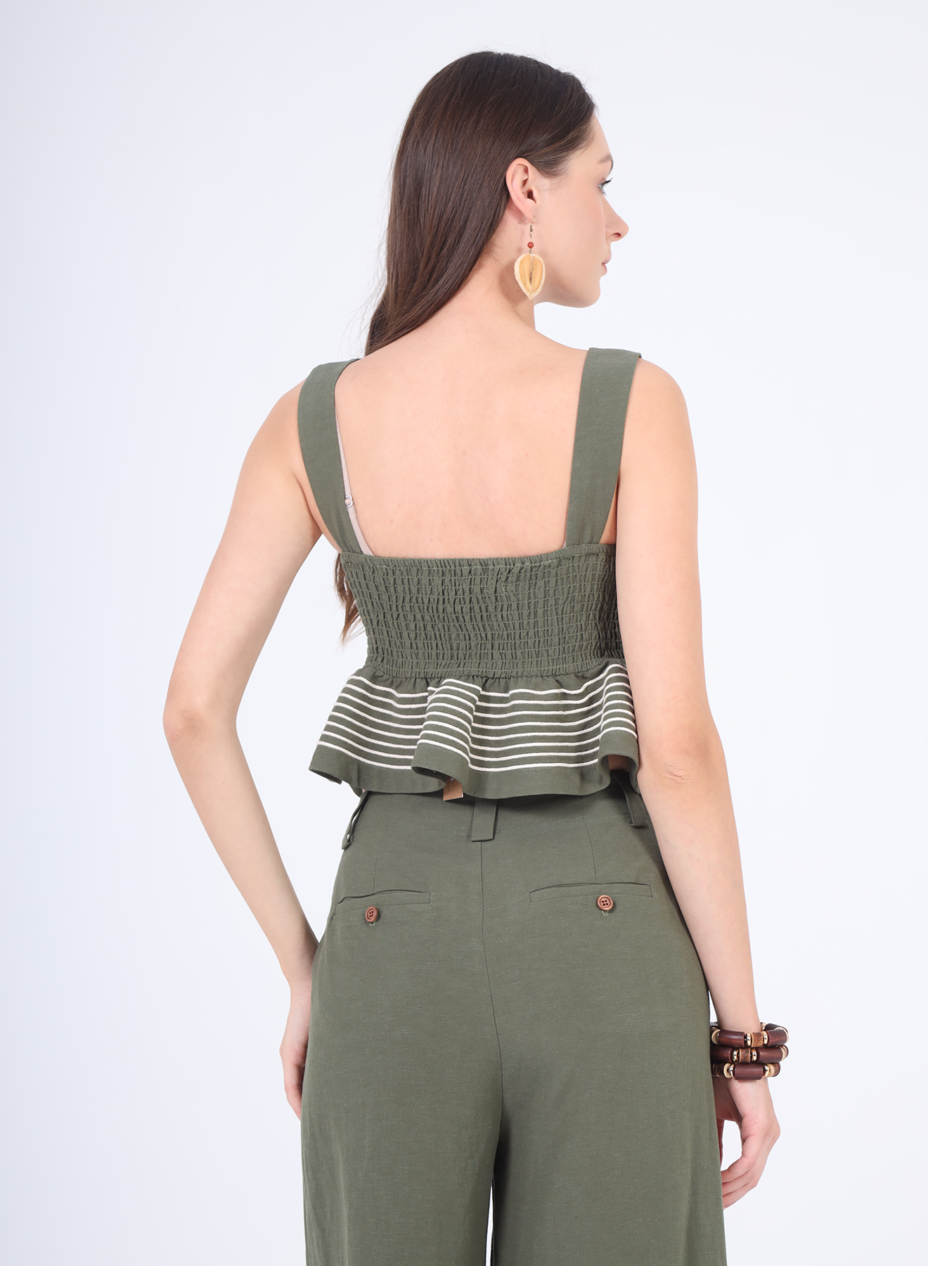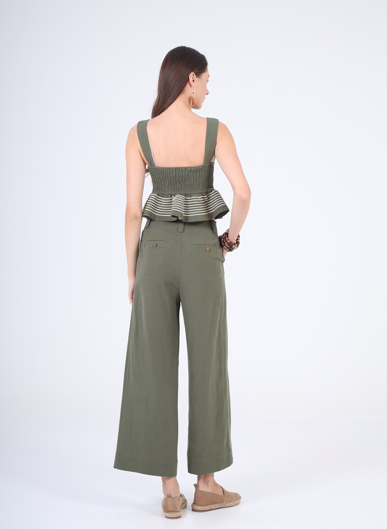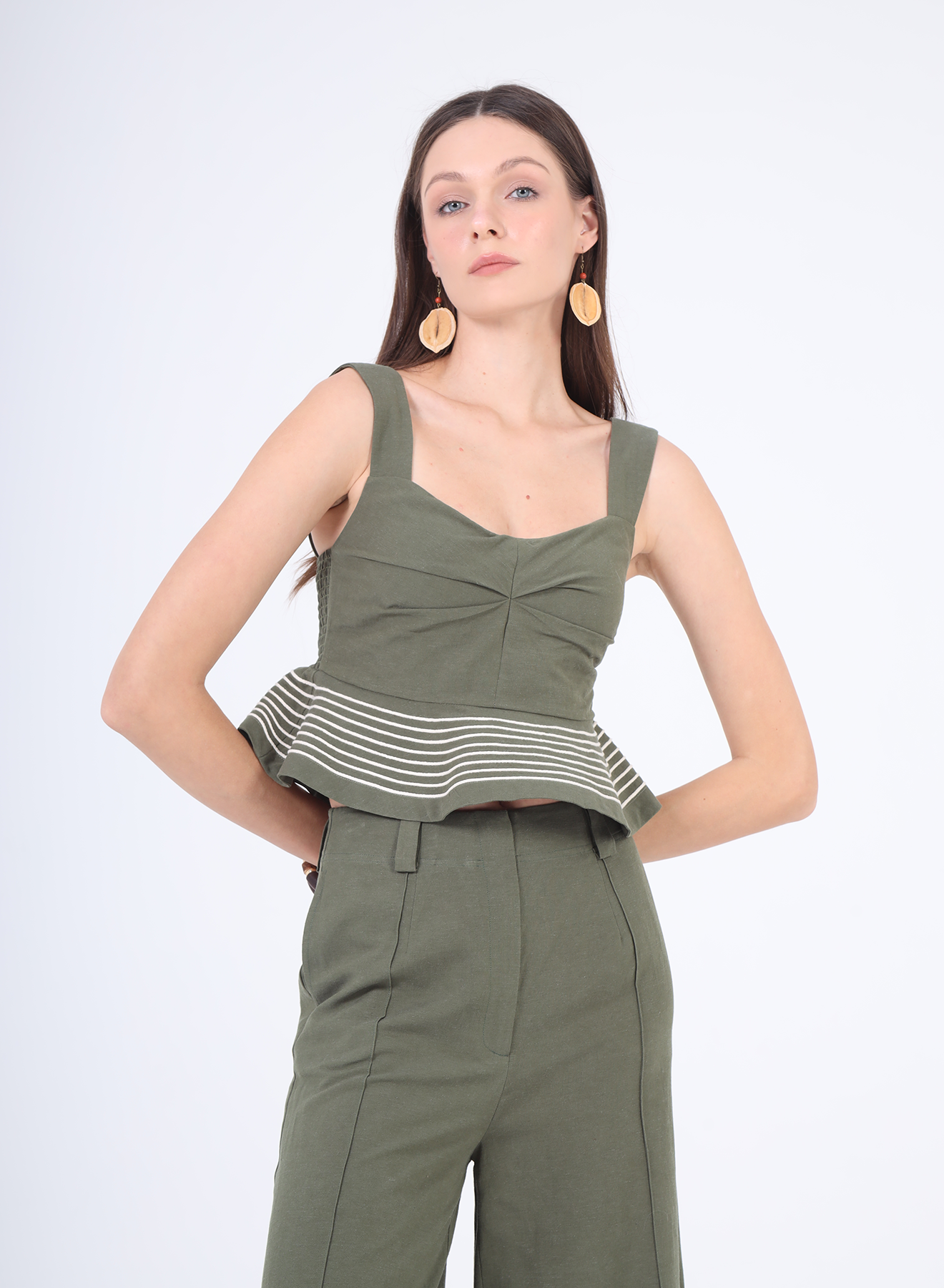 Elevate your wardrobe with the Barcelona Top, crafted from a refined blend of 55% linen and 45% viscose for breathable comfort and a luxurious drape. Its sleeveless design and delicate ruffle detail add a subtle touch of sophistication, making it an ideal choice for both polished office looks and elegant evenings. Experience effortless chic with this timeless piece.