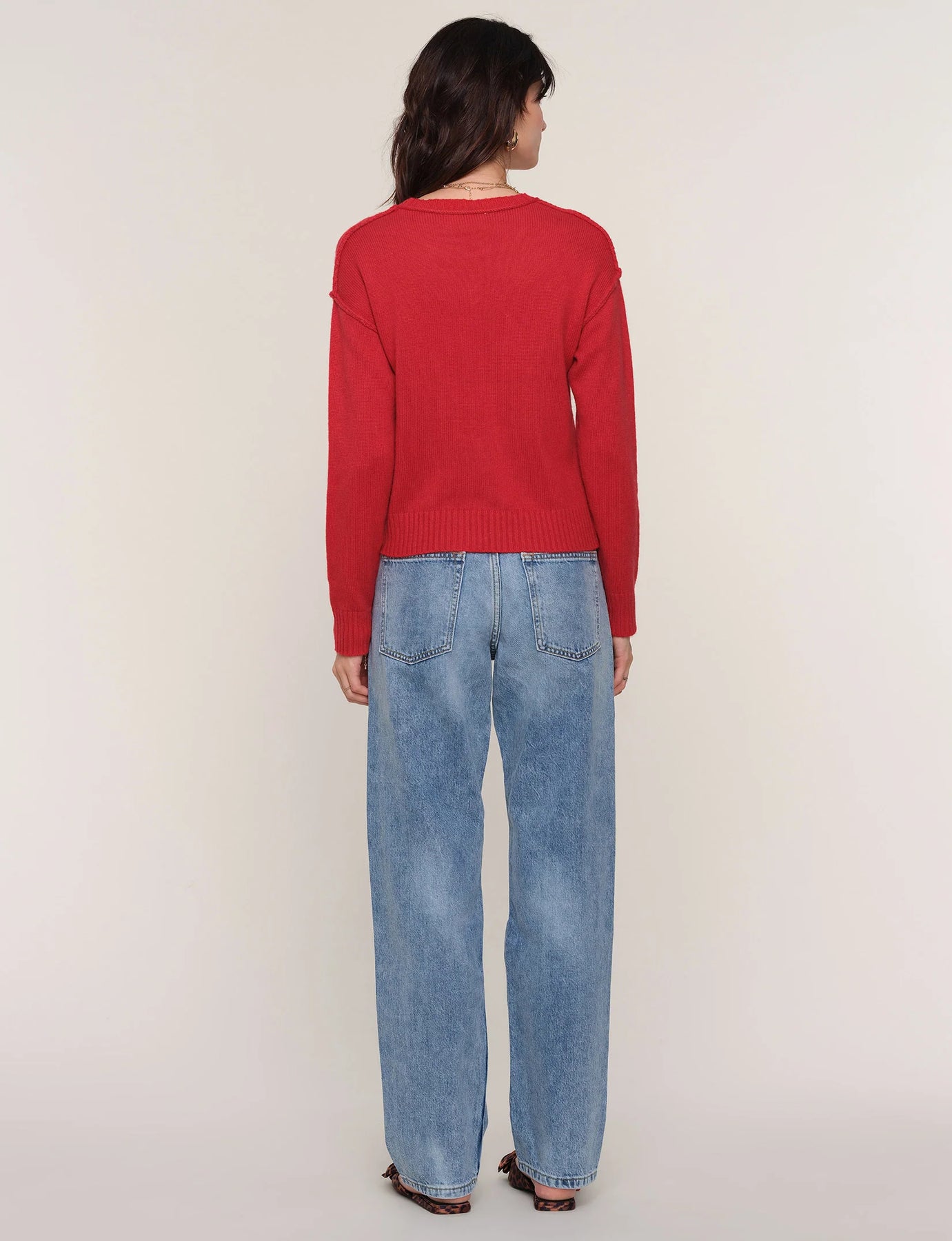 The Celty Sweater features a refined crew neck and relaxed fit, crafted from a luxuriously soft cashmere blend for unparalleled comfort. Its distinctive exposed seams and asymmetric front hem slit add a subtle, modern edge to this timeless piece, making it a sophisticated addition to any wardrobe.