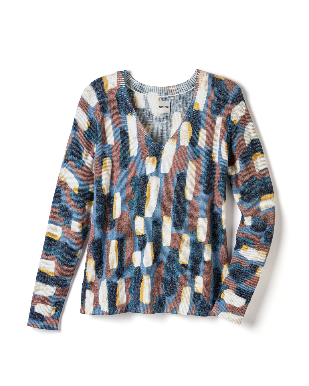 Elevate your wardrobe with the Brushstrokes Waffle V Neck Sweater, a refined blend of texture and style. Crafted with a subtle waffle knit, this sweater offers a sophisticated silhouette enhanced by its elegant V neckline. Perfect for layering or wearing alone, it delivers both comfort and a polished look suitable for any occasion.