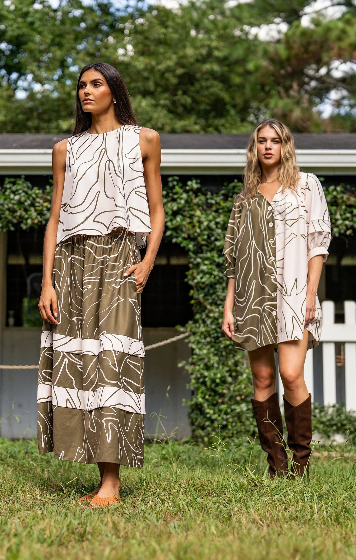 The Alma Tank is the ultimate transitional staple. With a classic crew neckline, playful button-back detail, and bra-friendly design, it’s as versatile as it is flattering. Pair it with the Marlow Skirt for an effortlessly polished look.