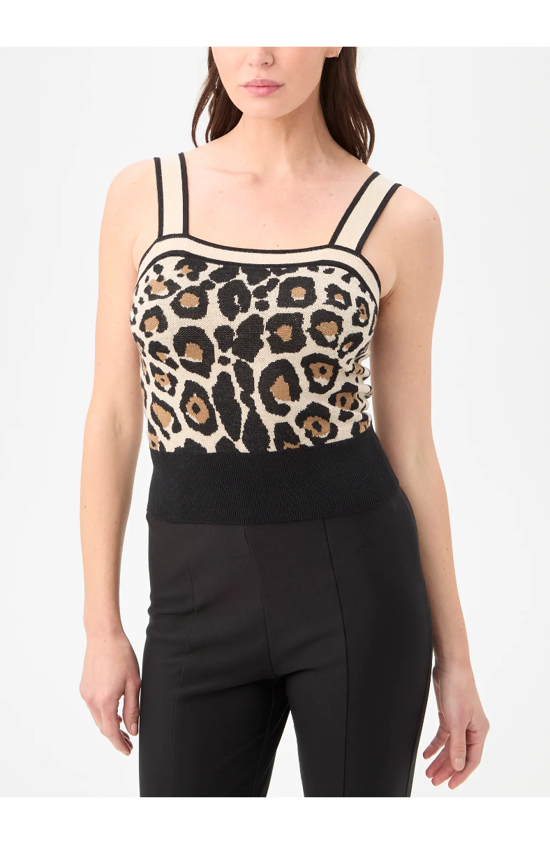 A cami for any occasion, this knit tank top features a colorful geometric pattern, a flattering square neckline, and a V-strap back. Layer this striped cami tank top with patterned bottoms for a fun warm-weather look.