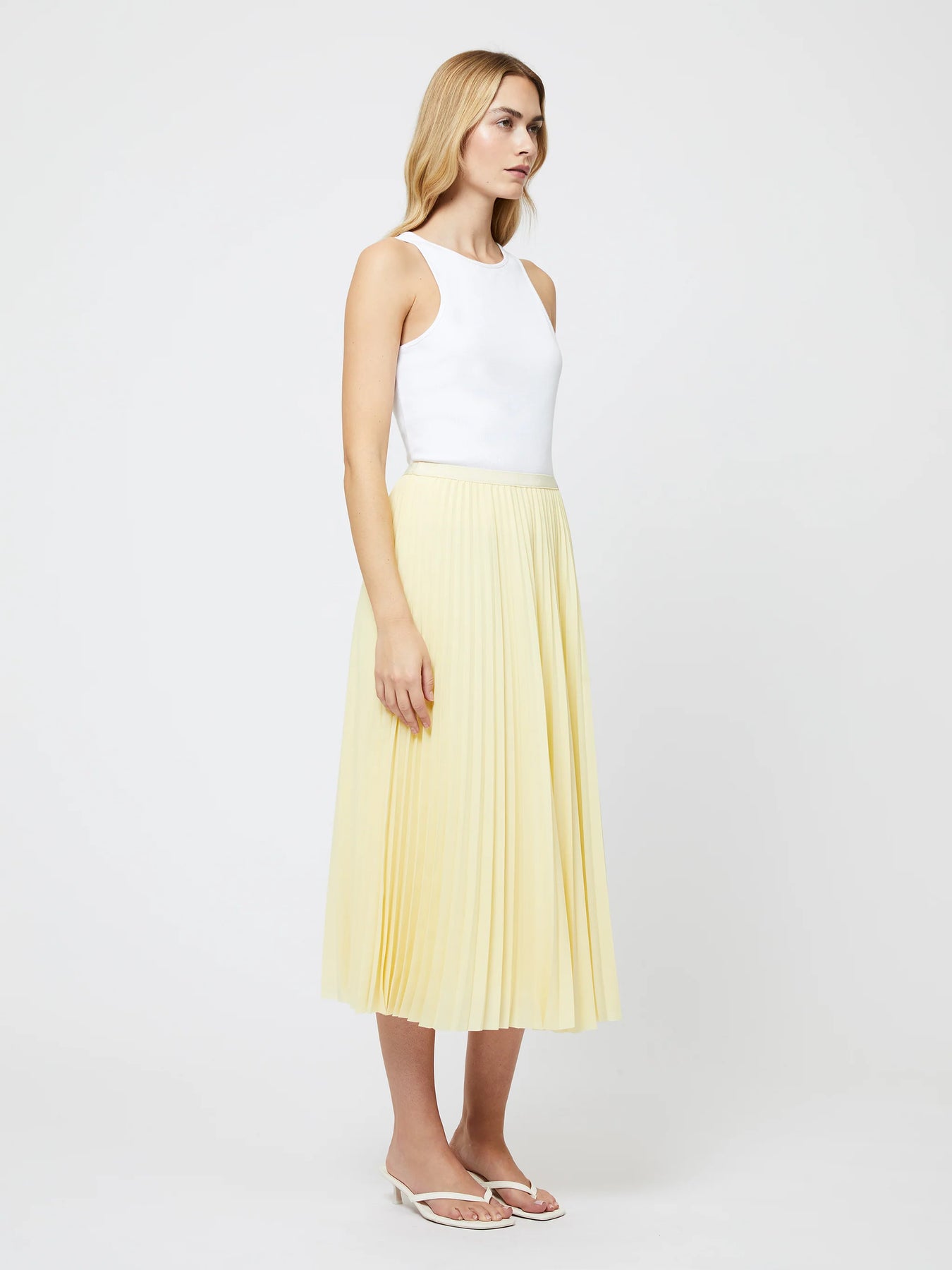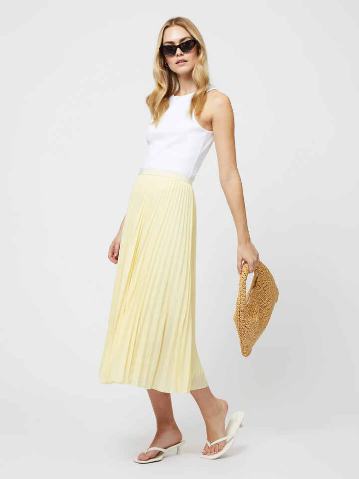 A skirt that’s as easy as it is chic. The Sunburst Pleated Midi Skirt is made from buttery yellow chiffon, with soft pleats that add just the right amount of movement. Featuring an elastic waistband for a comfy, flattering fit, this pleated midi skirt is the perfect piece for those days when you want to look effortlessly polished. Whether you pair it with a casual tee or a dressy blouse, this chic midi skirt will brighten up any outfit.