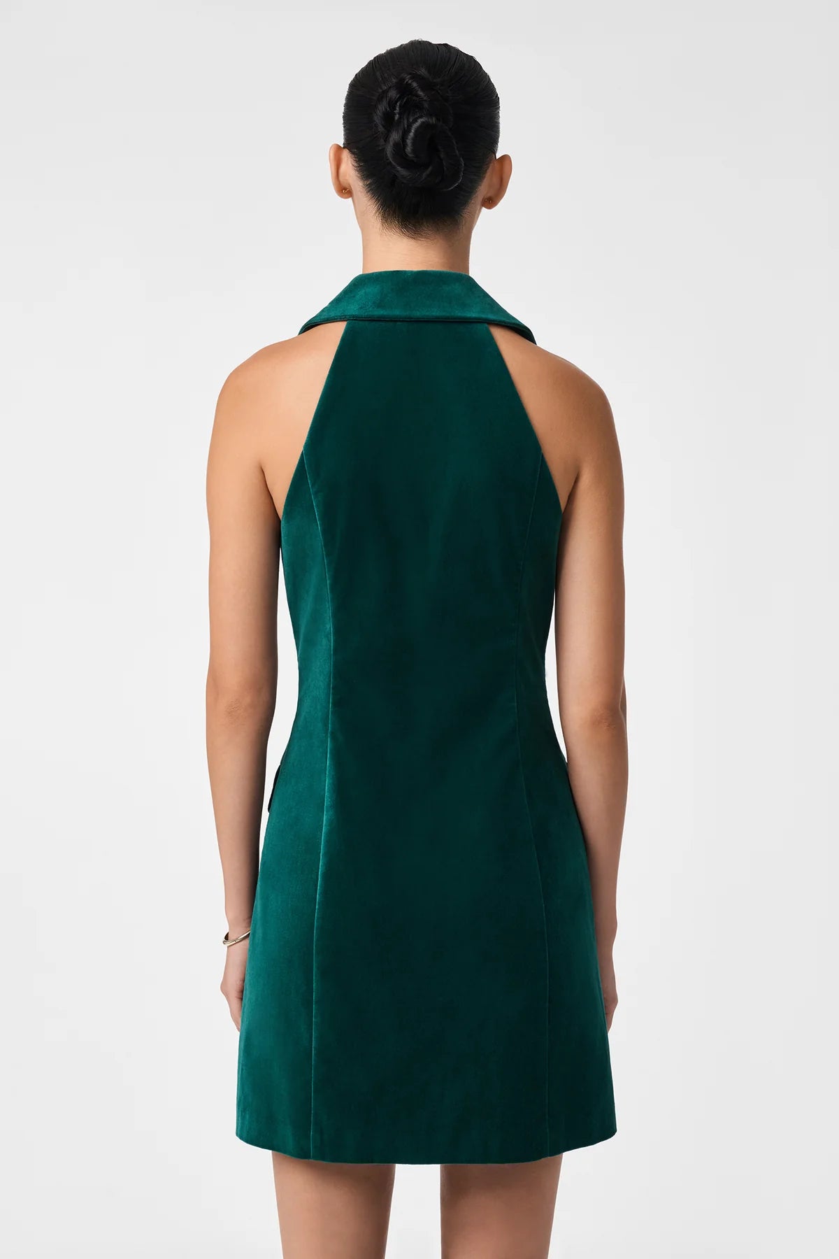 Whatever you have planned this holiday season, this festive mini dress will take you there in luxe style. Made of green cotton velveteen, this plush-soft button-down dress is finished with a collar and non-functional button-flap pockets.