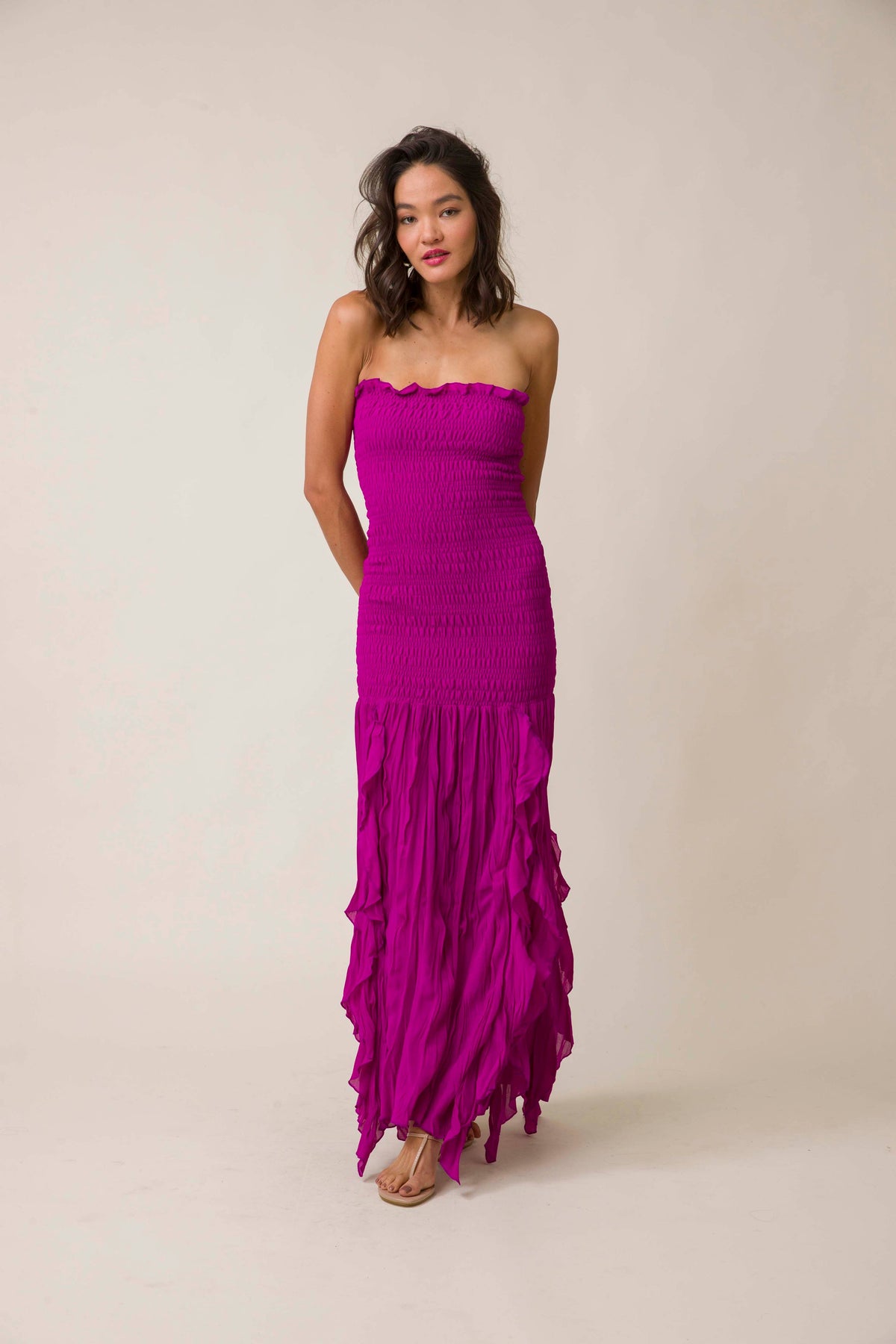 Meet the Headliner Strapless Midi Dress, a staple piece from Line & Dot. This dress captures our brand's philosophy of simplicity and femininity. Designed with careful attention to detail, it projects a modern aesthetic in figure-flattering lines. Its versatility makes it easy to style for any occasion. As with all our pieces, we aim to make you feel and look your best. In line with our commitment to sustainability, this dress is housed in our soon-to-be fully solar-powered warehouses, reflecting our ongoing efforts to reduce our carbon footprint.