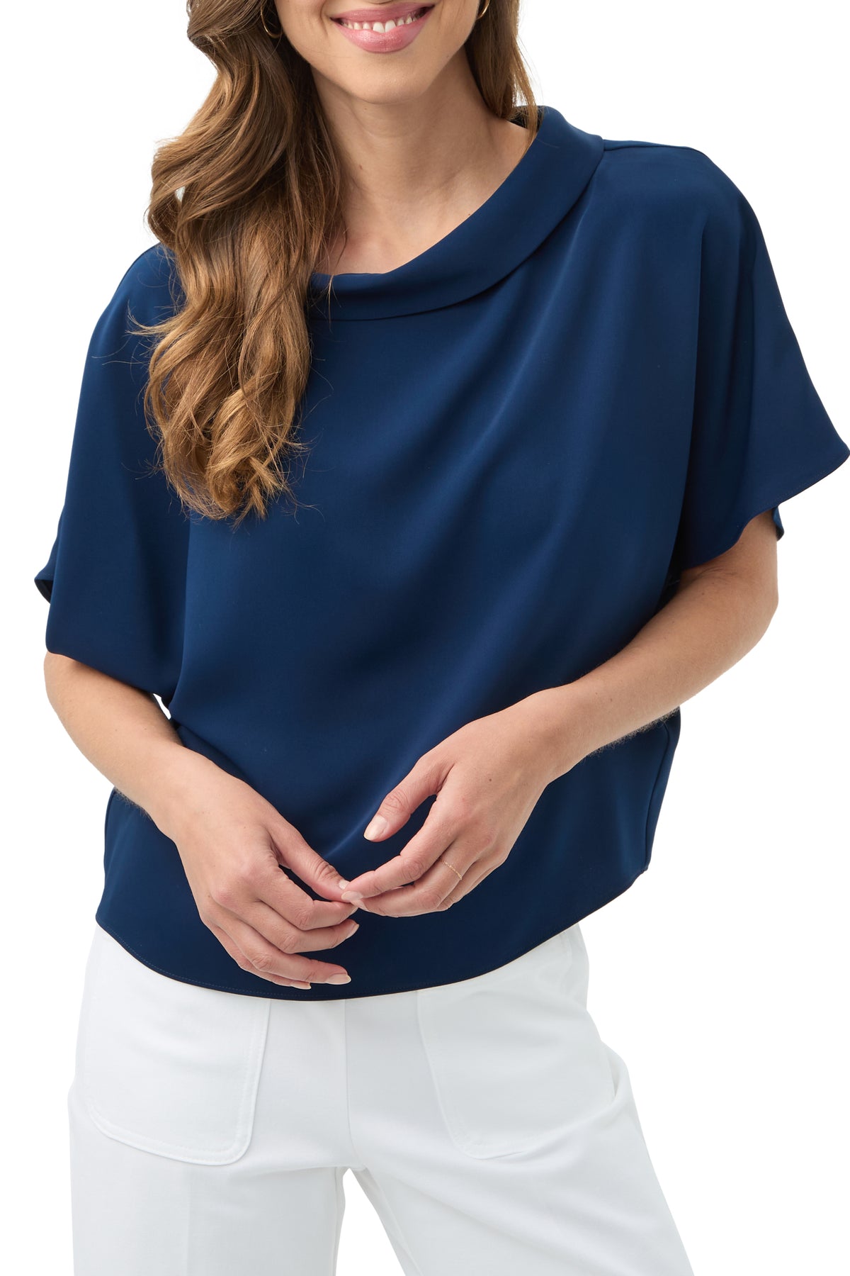Elevate your everyday wardrobe with this timeless, short-sleeve top with a drapey hand and relaxed fit. Stylish and versatile, this polished boatneck short-sleeve top looks great dressed up with a bold pattern or dressed down with jeans.
