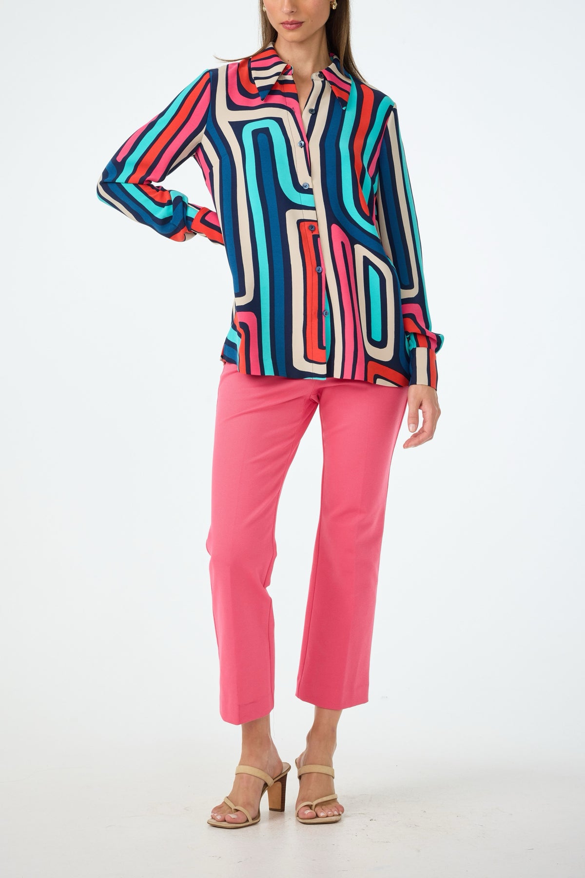 Effortlessly elevate your everyday wardrobe with the Montero Top, a sophisticated button-up collared blouse crafted from fluid polyester. Its relaxed, flowing silhouette pairs beautifully with tailored trousers or casual denim, while the vibrant colorway adds an unexpected pop of personality to any ensemble. A versatile staple that transitions seamlessly from office to weekend.
