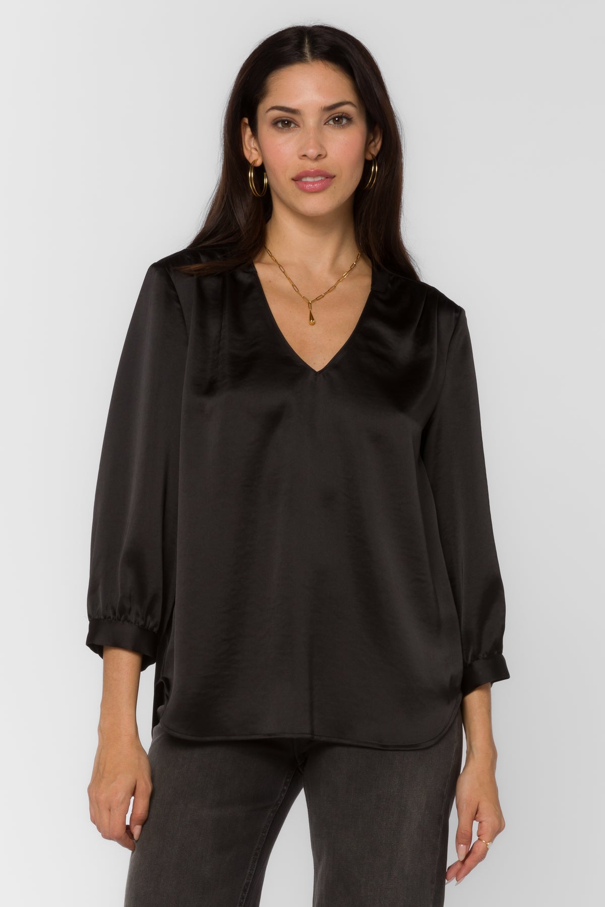 Introducing ROBYN, the sophisticated and exclusive 7/8 sleeve, pop over, satin, V-neck top. Elevate your look with this luxurious piece, featuring a flattering silhouette and elegant design. Perfect for any occasion, ROBYN combines style and comfort in one stunning package.