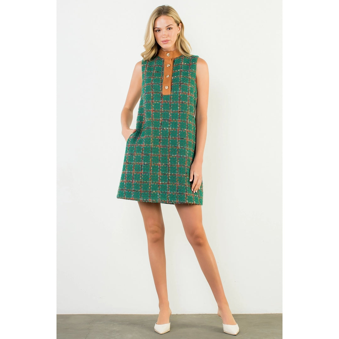 SLEEVELESS TWEED KNIT DRESS