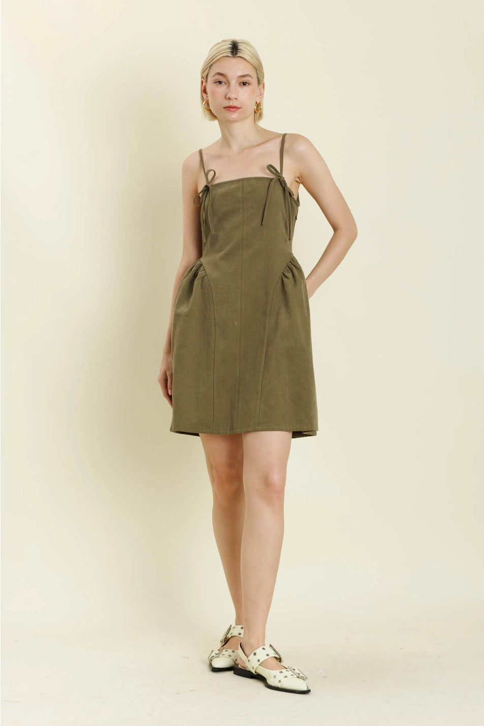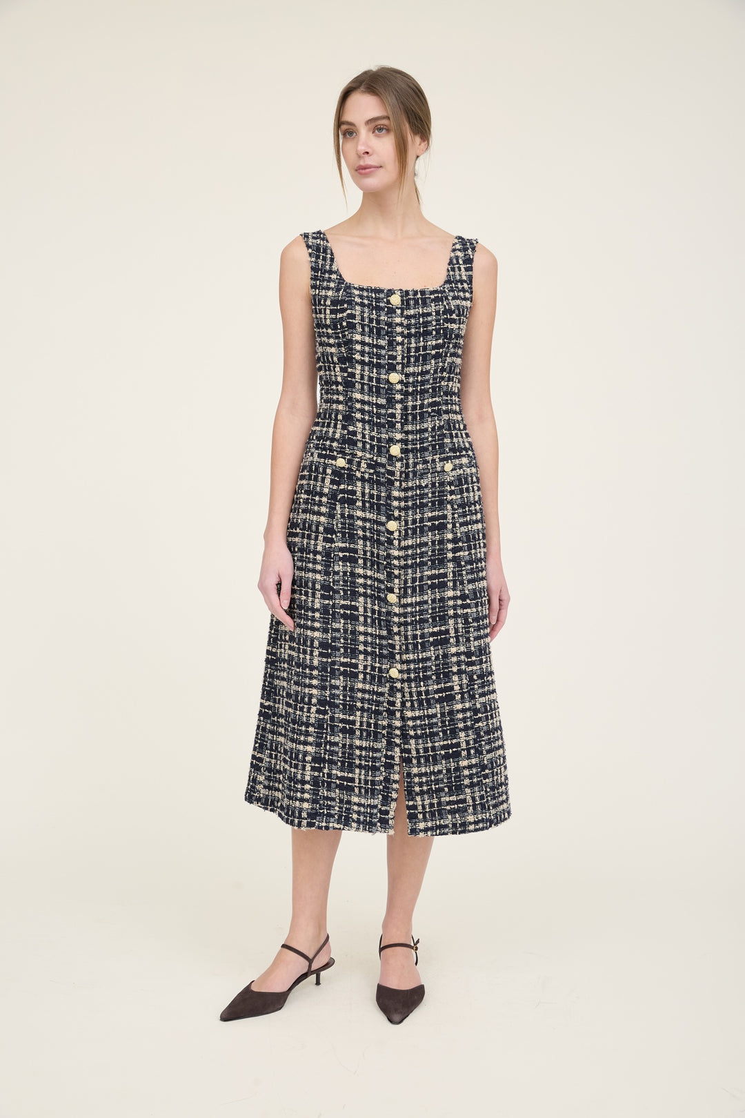 SLEEVELESS SQUARE NECK LINE TWEED MIDI DRESS