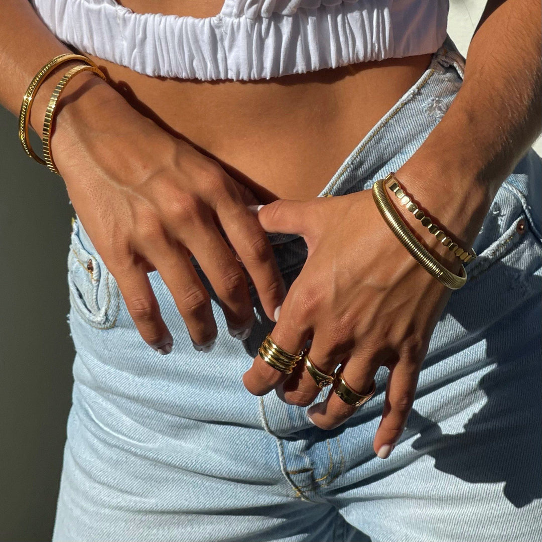 Experience the thrill of pushing your style to the edge with our Ashton Band Ring. This daring stacked band ring adds a bold and unique touch to any outfit. Dare to stand out and embrace the adventure of fashion.
