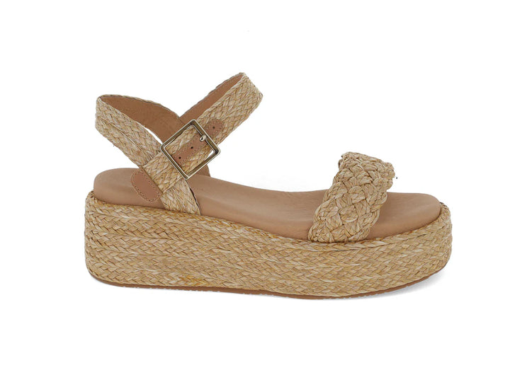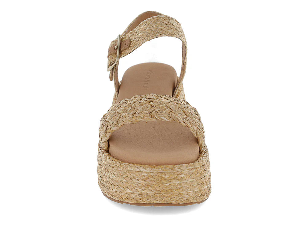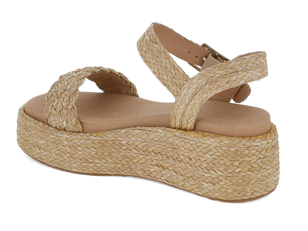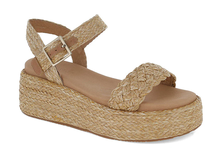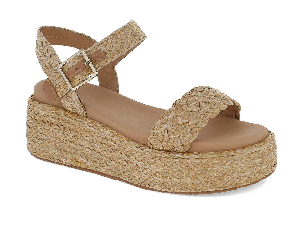 Constructed from natural raffia, these platform sandals feature a woven strap and leather lining for a comfortable fit. With a 2" heel and 1 1/2" platform, these sandals also offer a padded footbed and rubber outsole for added support.