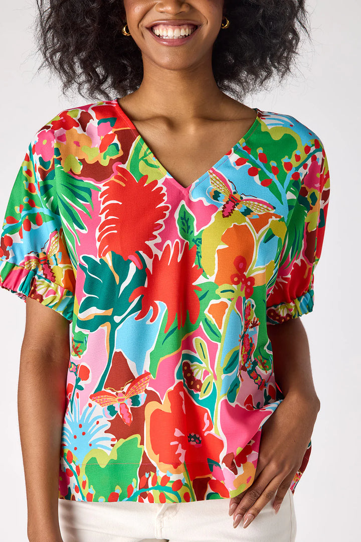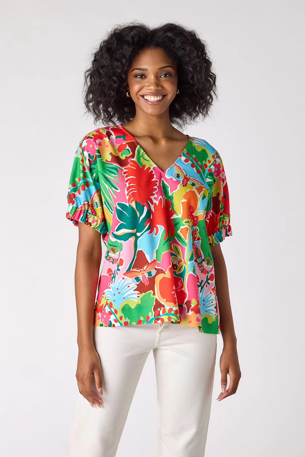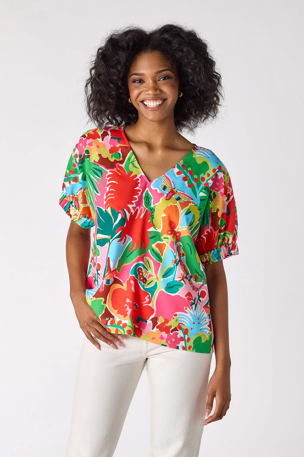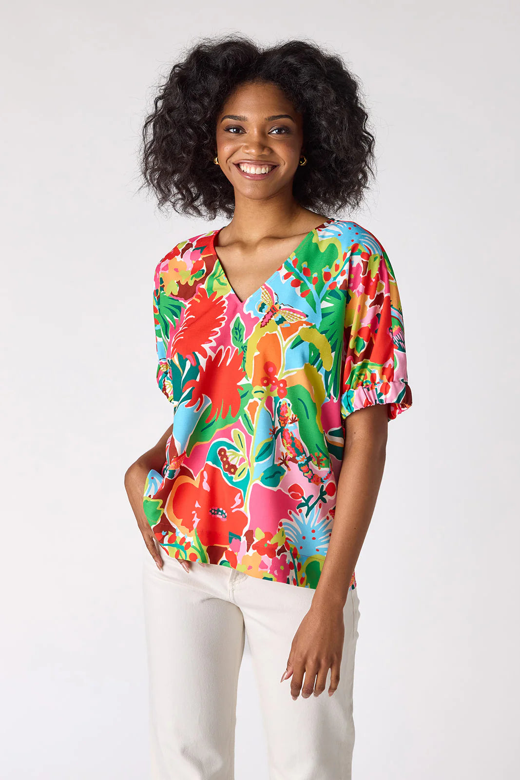With a flattering V-neckline and tunic length, the Nora Top will become your new go-to. The elastic style on the sleeve cuffs is a design element and non-functional, so you don't have to worry about it being tight on your arm!