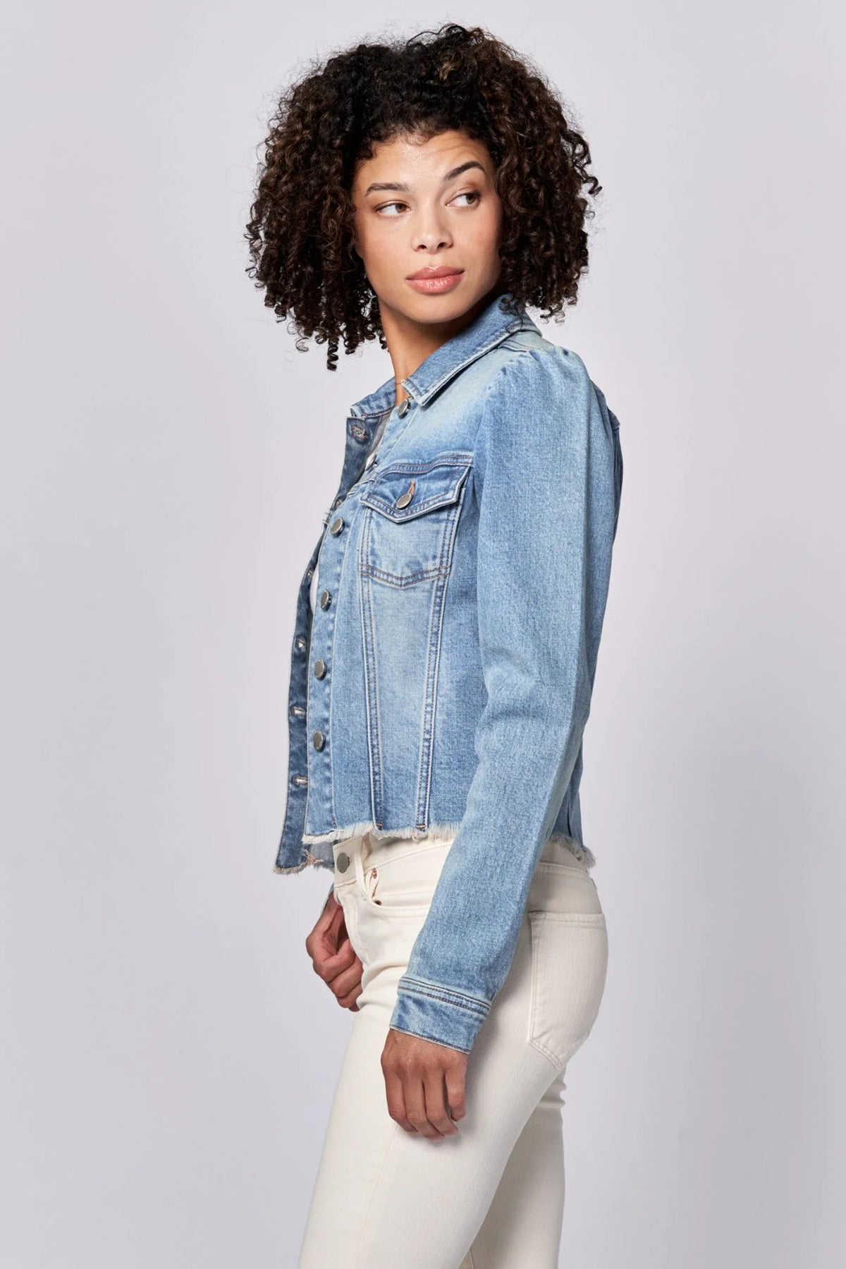 The standout Roselyn puff sleeves destructed Jacket is your new fashion essential that combines style and functionality effortlessly.