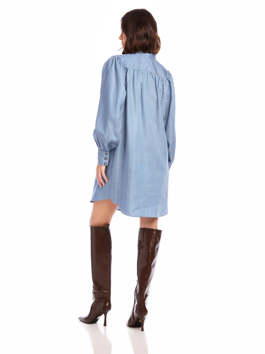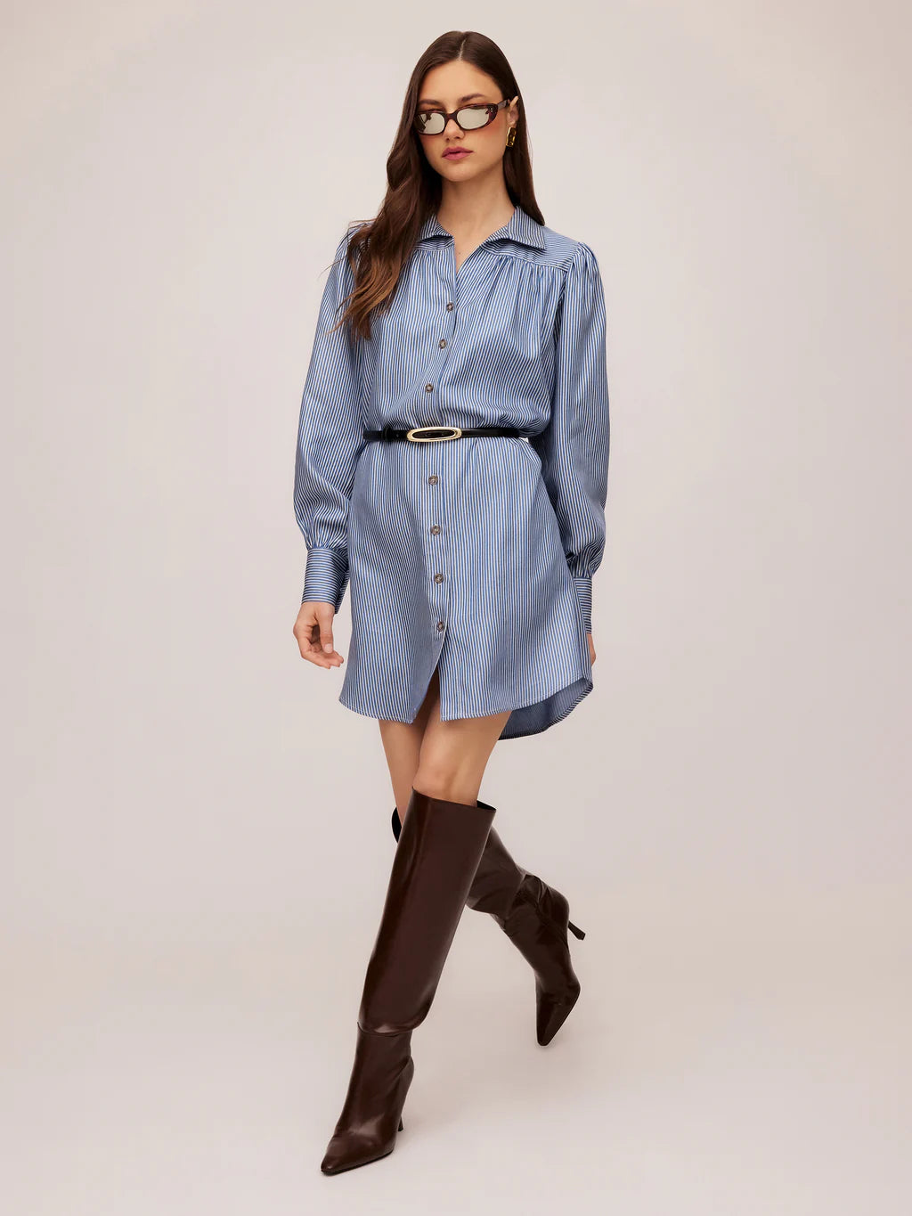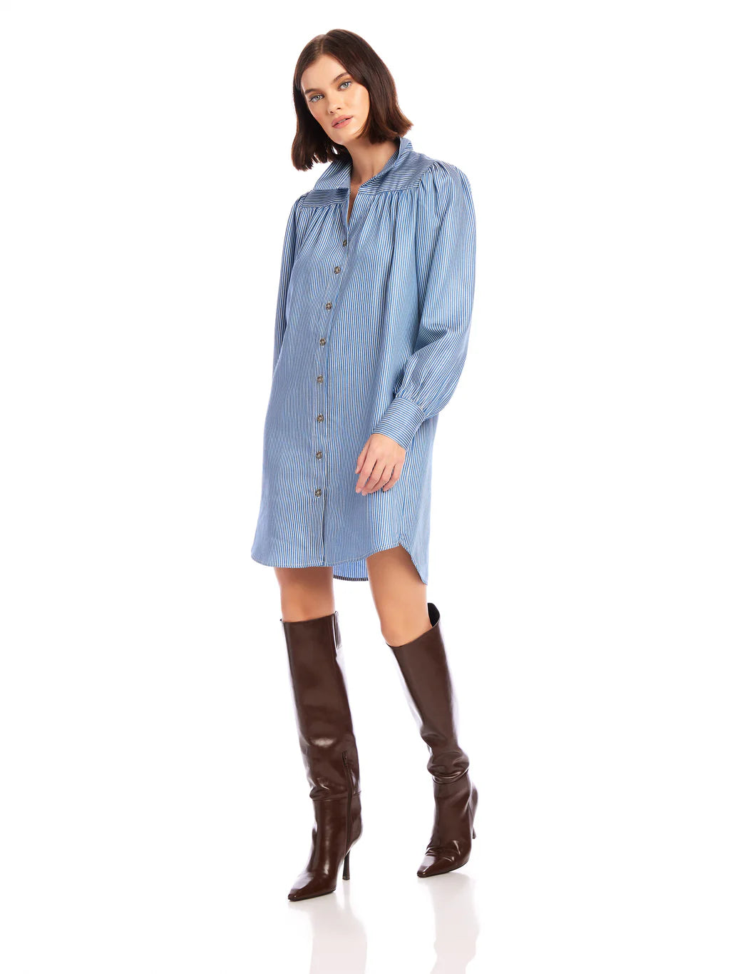 Indulge in the effortless elegance of the Natalia Shirtdress. Made from a luxurious chambray stripe woven fabric, this dress exudes casual chic. Perfectly paired with thigh high boots or heels, it's the ultimate option for a night out.