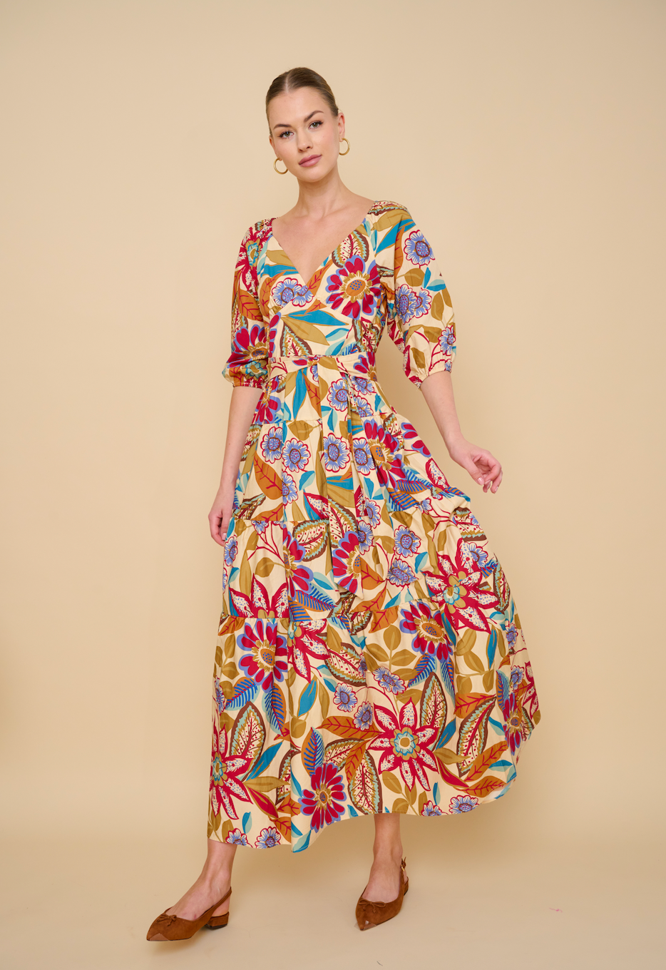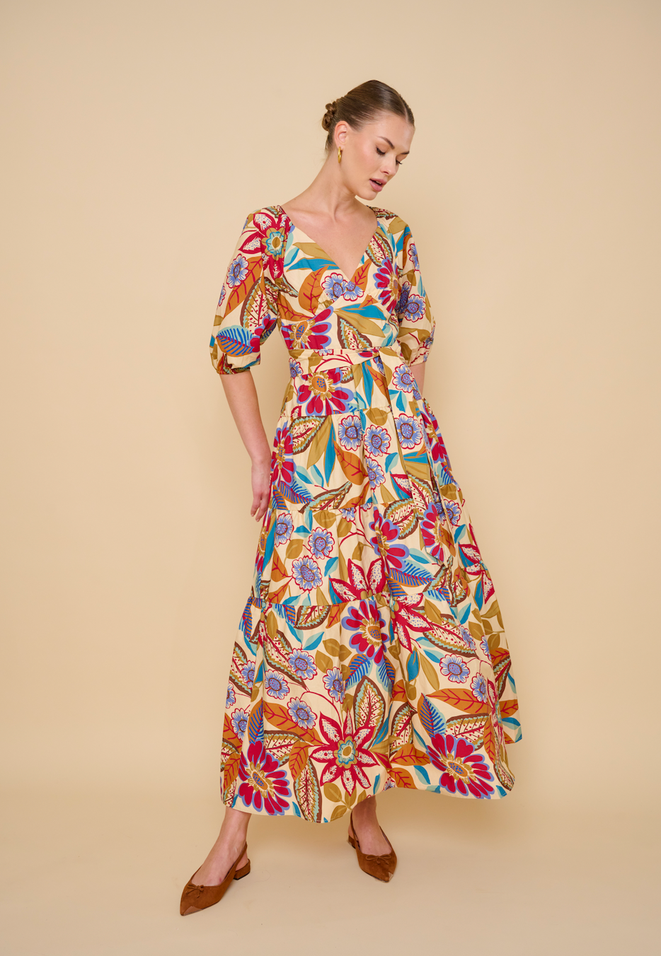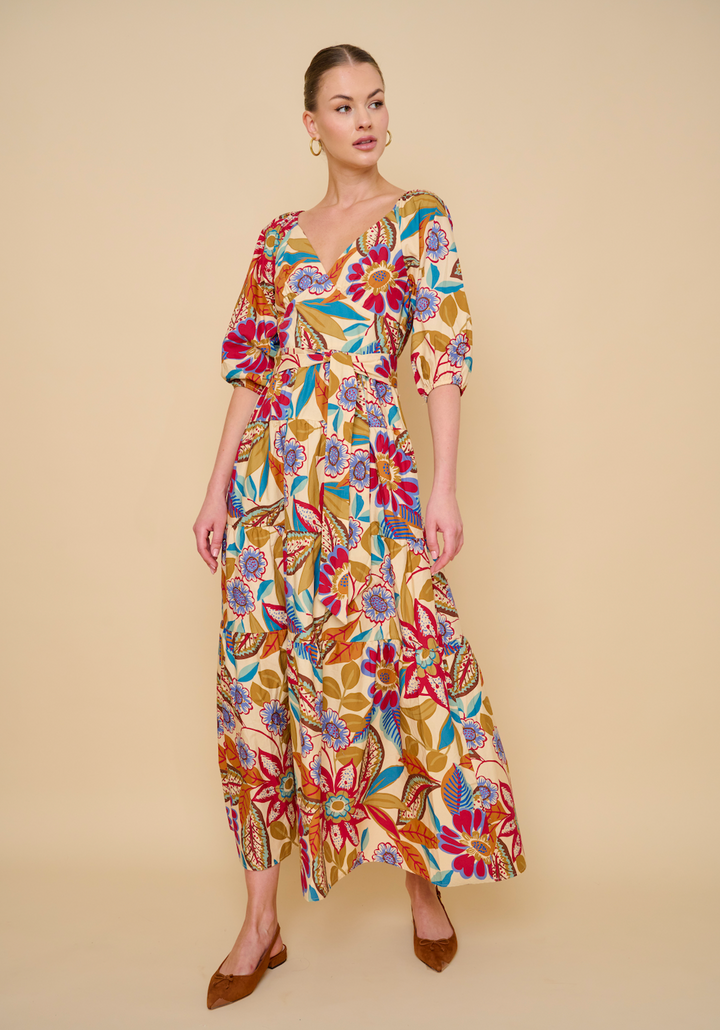 Elevate your wardrobe with the Giulio Dress, a sophisticated maxi featuring short sleeves and a flattering tie waist. Its elegant printed design adds a refined touch, making it perfect for both daytime events and evening occasions. The flowing silhouette ensures comfort while enhancing your natural shape with a cinched waist detail.