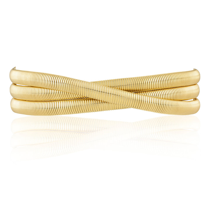 The Hannah Choker is the perfect accessory to complete any look. Crafted from three sparkling gold strands, this stunning choker adds elegance and glitz to any outfit. Look beautiful and feel confident with this classic piece.