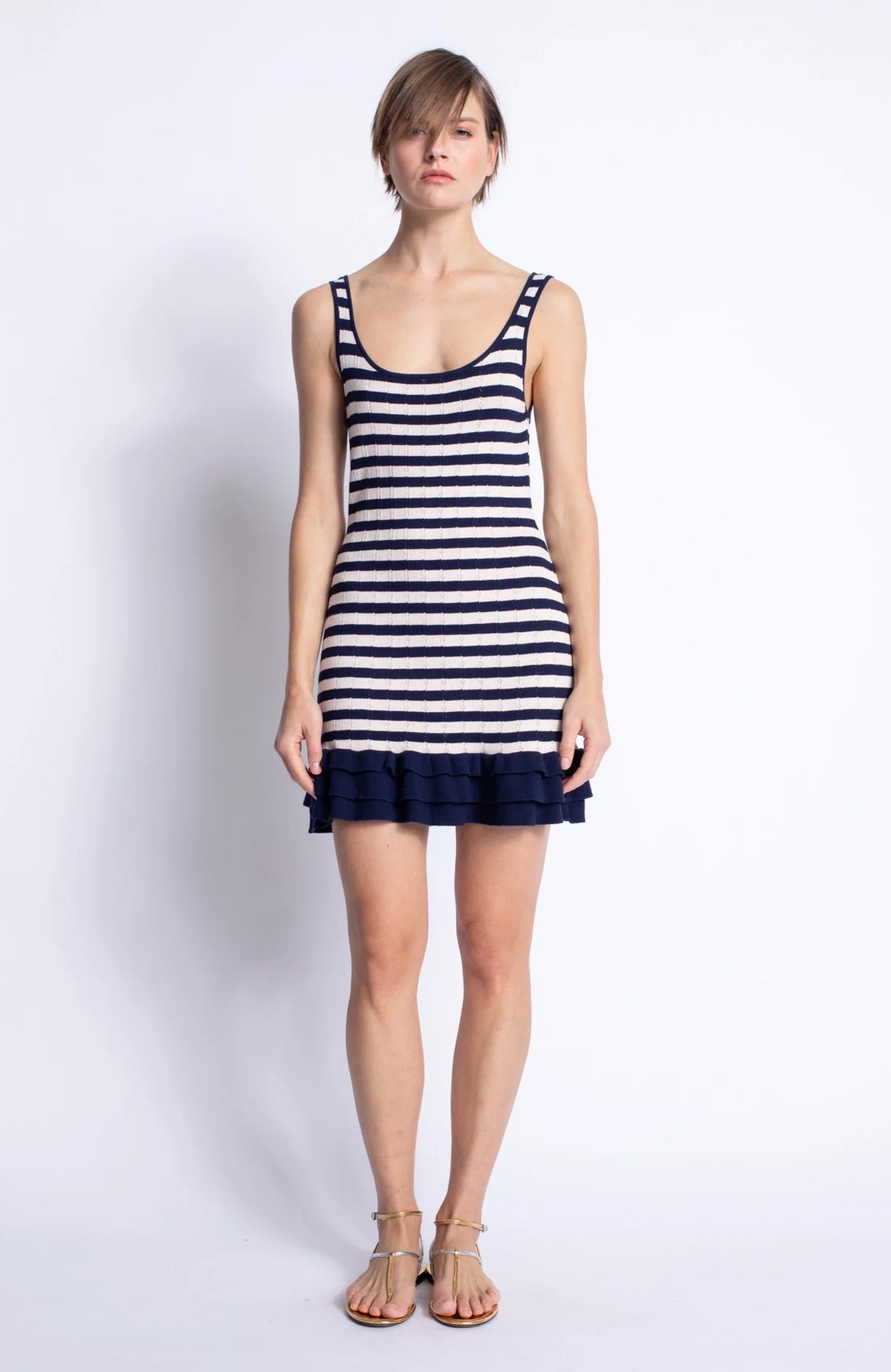 Elevate your wardrobe with the Flor Knit Mini Dress, a sleeveless design featuring elegant stripes that add subtle texture and visual interest. Its refined silhouette offers a sophisticated yet effortless look, perfect for both day and evening occasions. Crafted for comfort and style, this mini dress is a versatile addition to any collection.