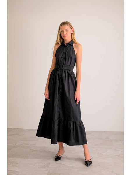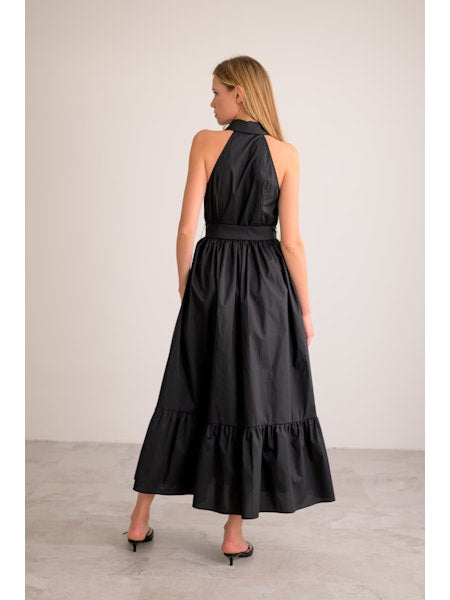 Elevate your wardrobe with the River Dress, a collared maxi featuring elegant ruffles and a flattering belted waist. This sophisticated design combines timeless structure with feminine details, creating a graceful silhouette perfect for any refined occasion.