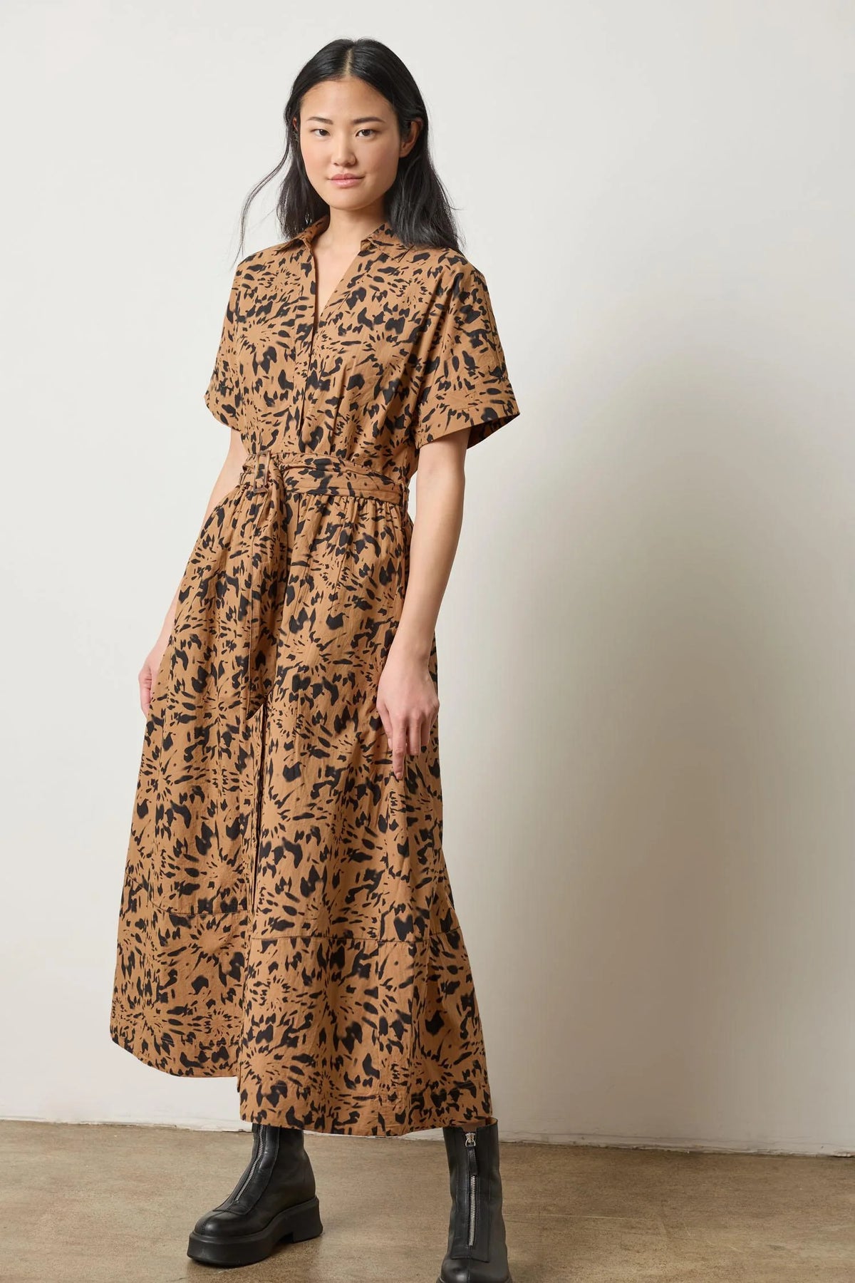 The Collared Maxi Shirtdress in our crisp, smooth poplin is soft with just enough structure to hold its shape beautifully. Designed with a full hidden button placket and a self-belt with a faux tortoise D-ring, this dress offers a polished yet effortless feel. The extended cuffed sleeves create a relaxed fit on top, and the fuller skirt adds just the right amount of fullness. Fully lined, it's the perfect dress for fall. The solid colors feature a subtle color-block detail, while the print version is left uninterrupted for a clean, seamless look.