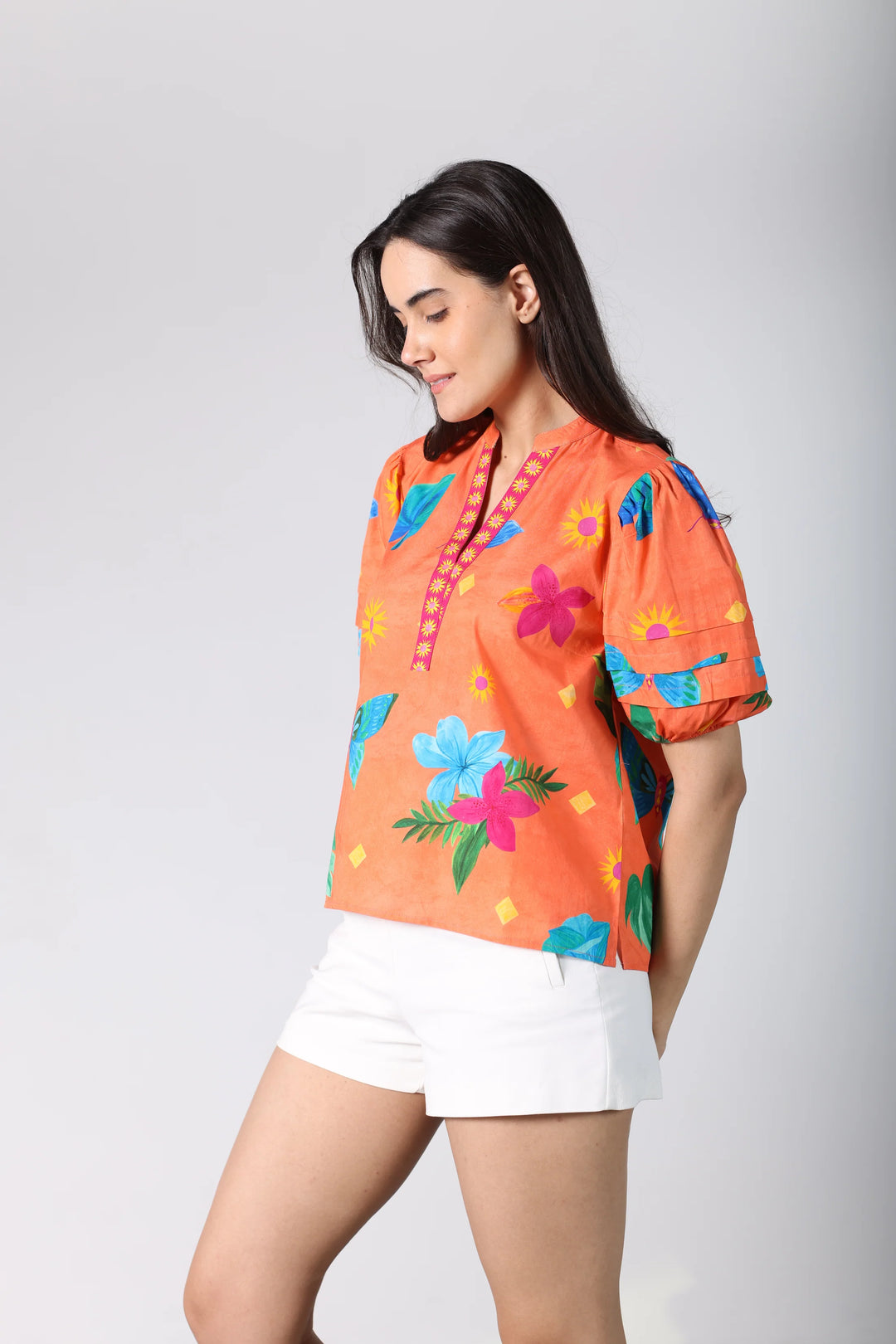 The Raya Top combines effortless elegance with comfort, featuring a refined printed design on a soft, breathable fabric. Its short sleeves and tailored fit make it perfect for both polished daytime looks and chic evening ensembles. Elevate your wardrobe with this versatile piece that balances style and ease.