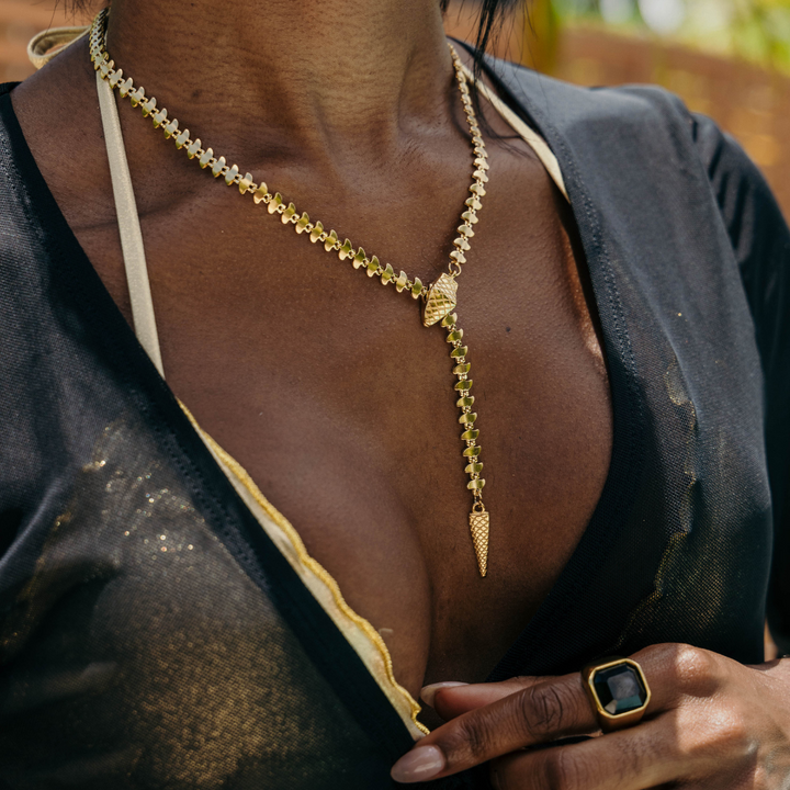Make a statement when you wear the Ora Onyx Ring. This gorgeous piece features a grand onyx stone on a thick band. Wear this piece when you want want to feel bold and powerful.