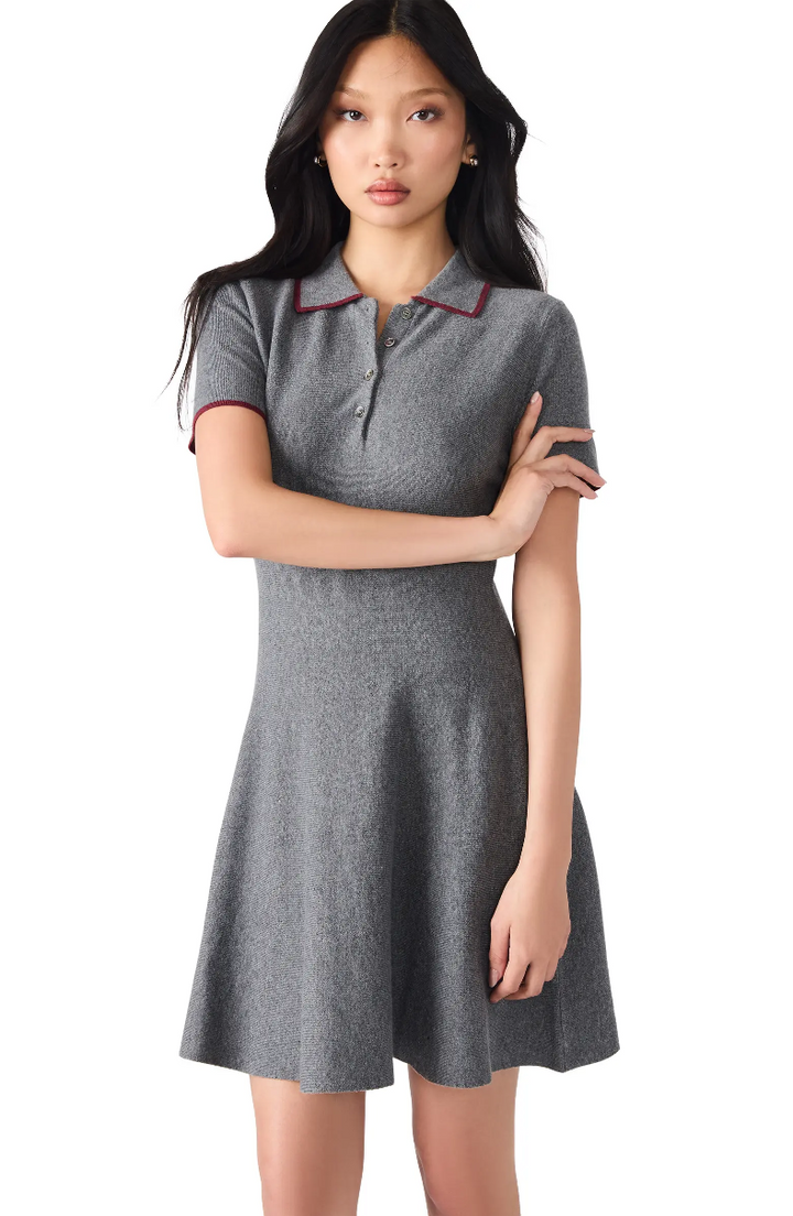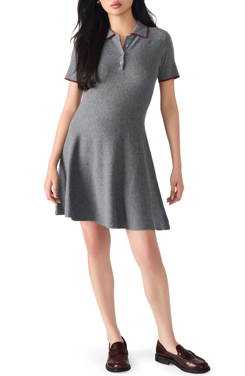 A spread collar brings athleisure-inspired style to this wardrobe-staple sweater-dress knit with contrasting trim and a fabulous fit-and-flare silhouette.