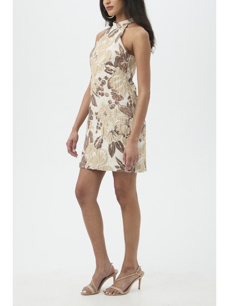 Elevate your wardrobe with the Garam Dress, a sophisticated halter neck mini dress featuring a delicate print that adds subtle charm. Its flattering silhouette and refined design make it perfect for both daytime elegance and evening occasions. Crafted to combine comfort with style, this dress offers a polished look that effortlessly enhances your presence.