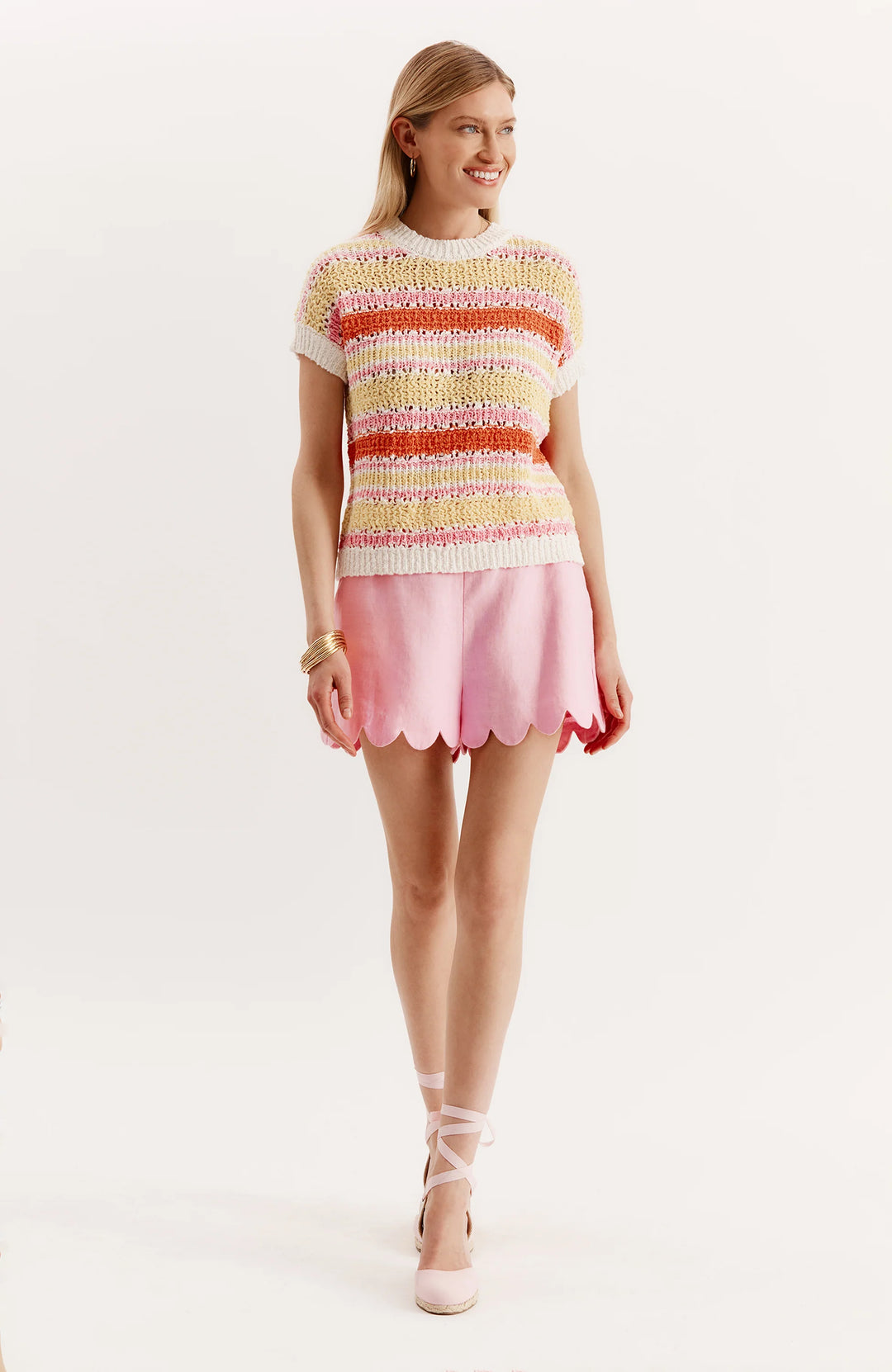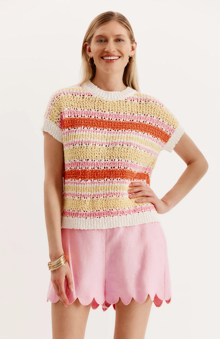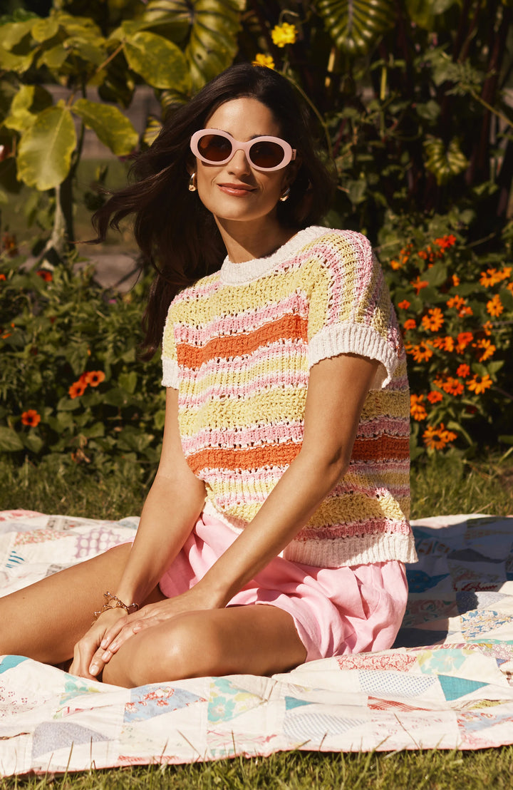 The Vero Crochet Sweater is the perfect in-between sweater for your wardrobe crafted from a cotton-linen blend. With a relaxed, boxy silhouette and short sleeves, this top pairs perfectly with denim or shorts.