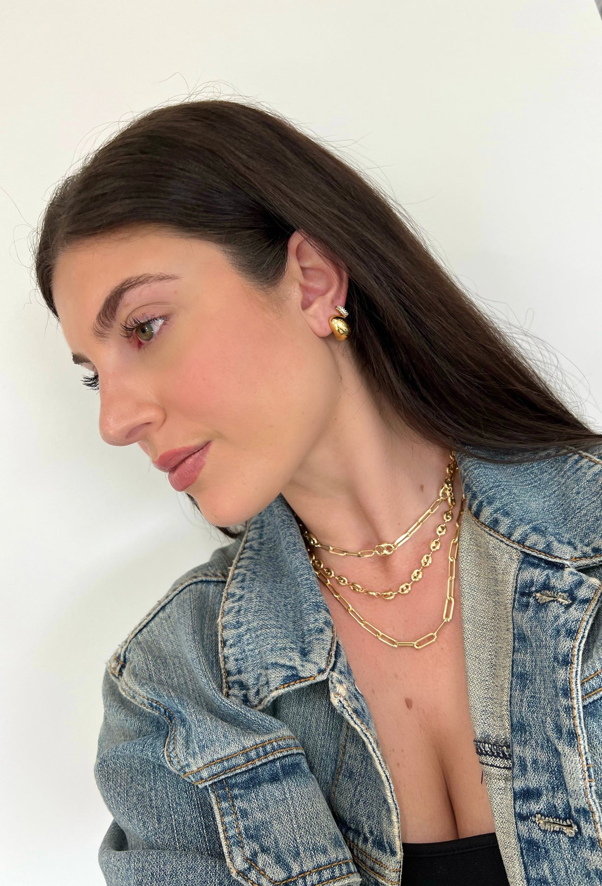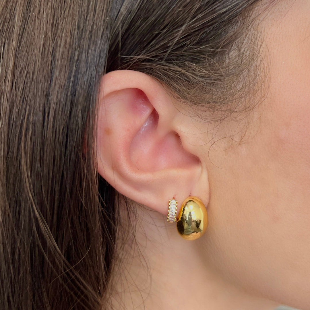 Feel glamourous when you wear our Viola Cz Huggie. The perfect earring for spicing up your outfit with a little bit of bling. Featuring stunning cz stones on 18k gold plating.